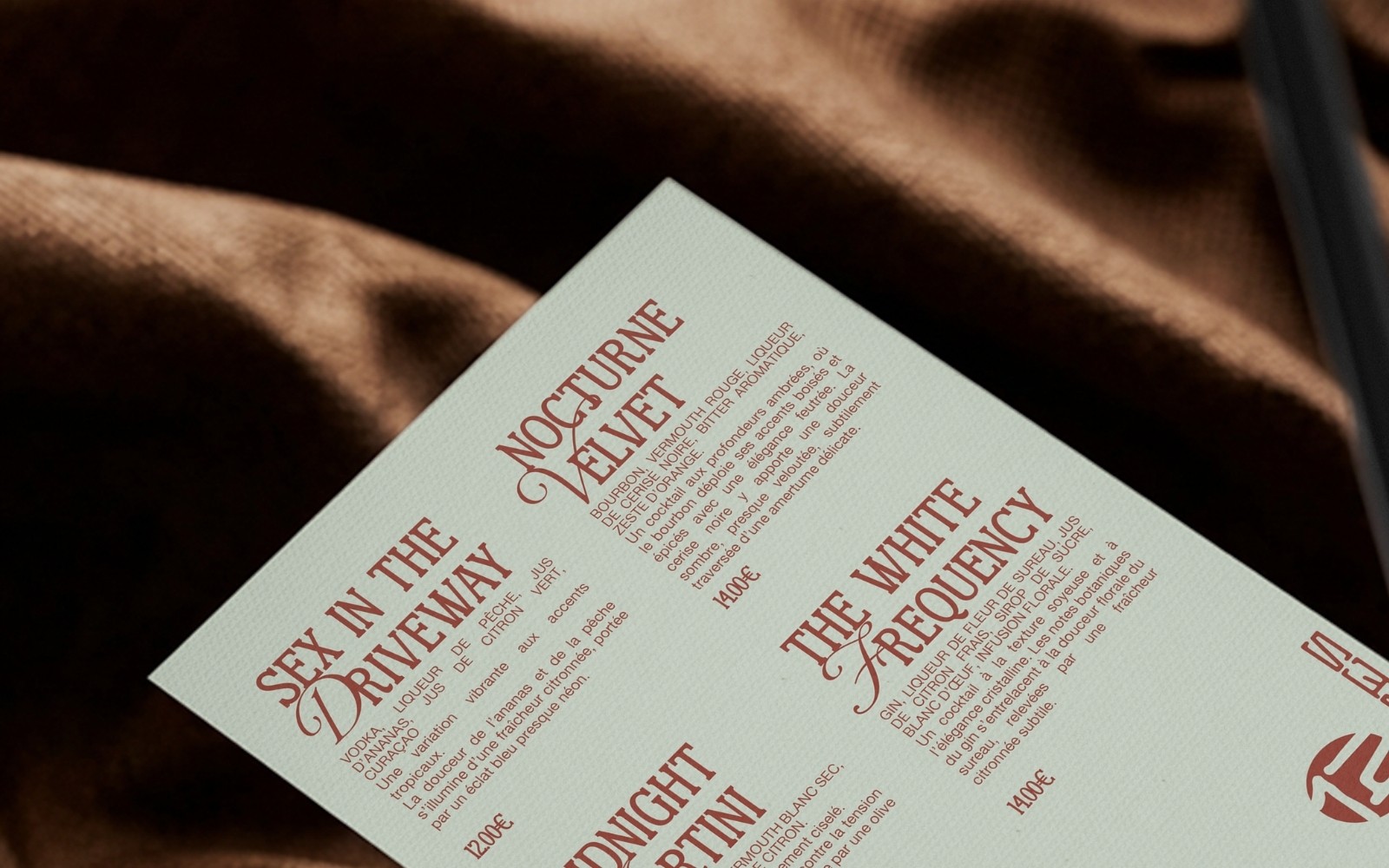 // Concevoir une direction artistique immersive et cohérente, capable de traduire l’univers nocturne et sensoriel d’un bar à cocktails : DIRECTION ARTISTIQUE // IDENTITÉ VISUELLE // UNIVERS DE MARQUE // MOODBOARD // SUPPORTS PRINT & MENU