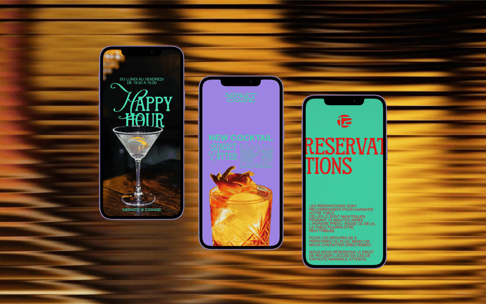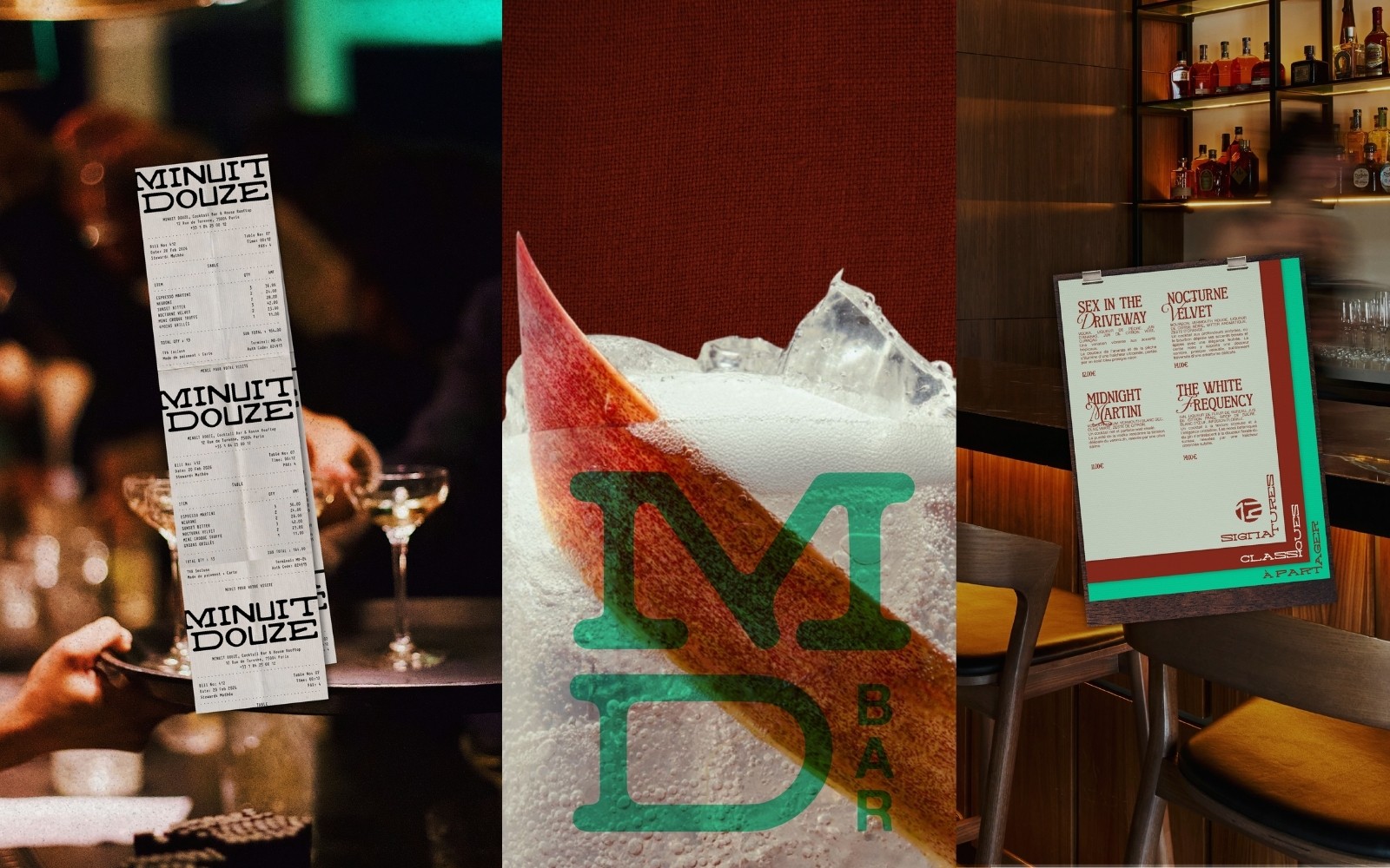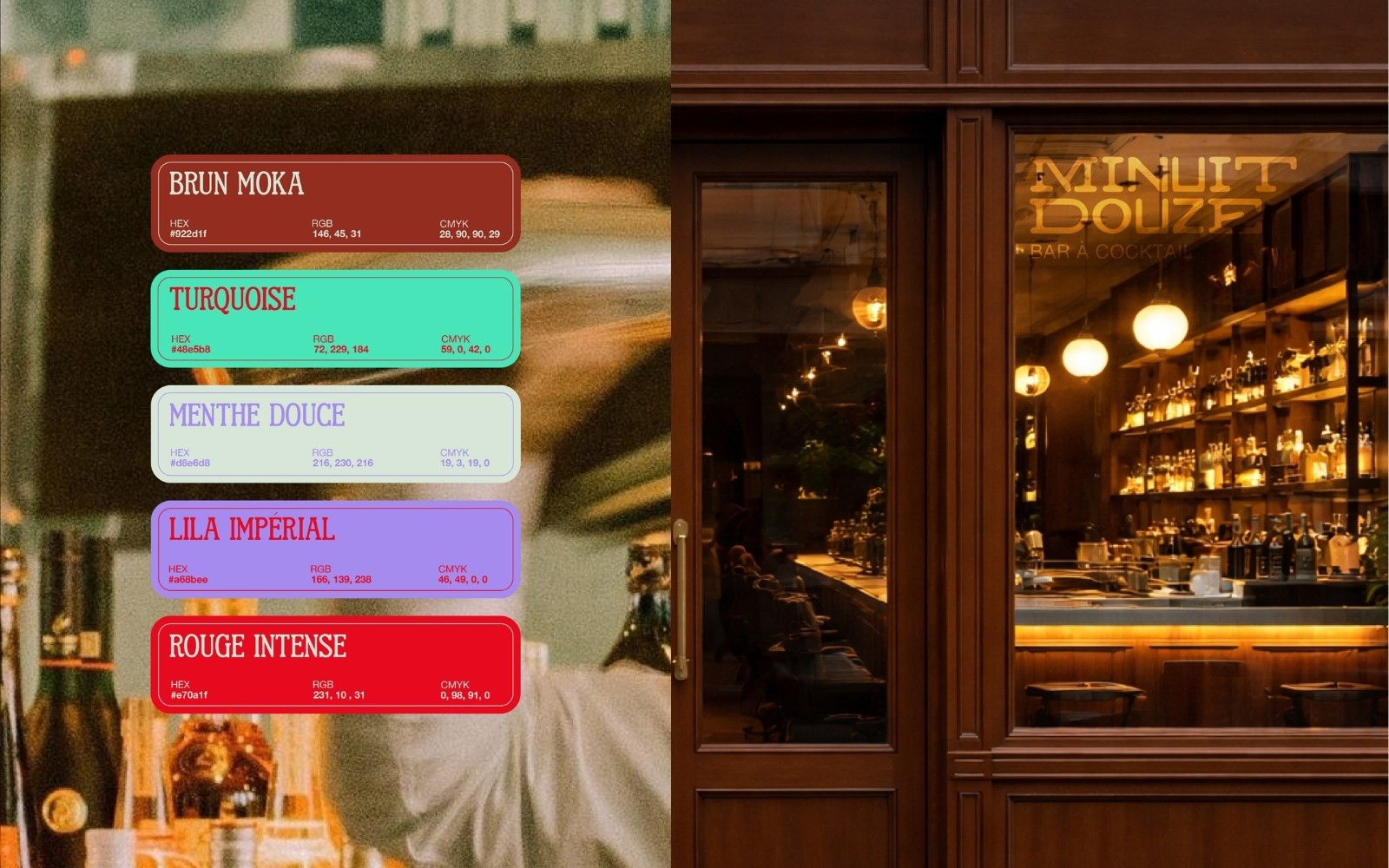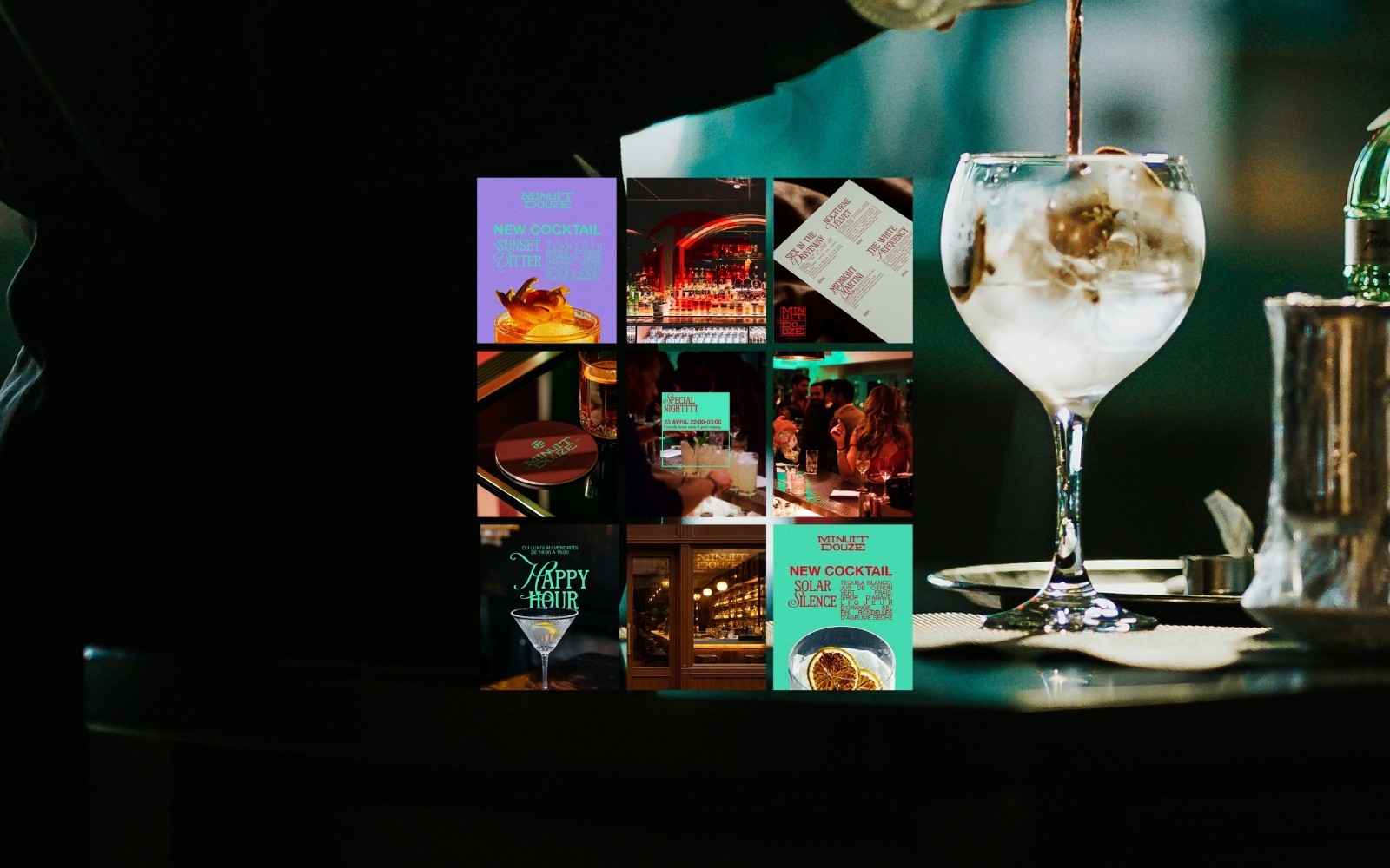 Ce projet s’appuie sur une exploration visuelle inspirée de la nuit, des bars à cocktails et de la mixologie, pour créer une identité forte, entre sophistication et convivialité.